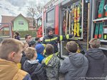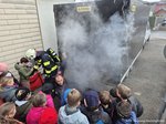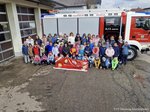 Danach stand die Praxis im Mittelpunkt: In fünf Gruppen aufgeteilt, konnten die Kinder hautnah erleben, welche Ausrüstung und Technik die Feuerwehr im Einsatz verwendet. Sie probierten Feuerwehrbekleidung an, testeten eine Wärmebildkamera und lernten den Atemschutz kennen. Zudem hatten sie die Möglichkeit, Geräte wie das Hochdruckrohr, den Hochleistungslüfter sowie die Hebekissen des Rüstlöschfahrzeugs aus nächster Nähe zu betrachten und teilweise selbst auszuprobieren. Ganz nach dem Motto „Feuerwehr zum Anfassen“ wurde der Vormittag zu einem besonderen Erlebnis, das für alle wie im Flug verging. Zum Abschluss durfte ein gemeinsames Gruppenfoto nicht fehlen, bevor es kurz vor Mittag wieder zurück in die Schule ging.